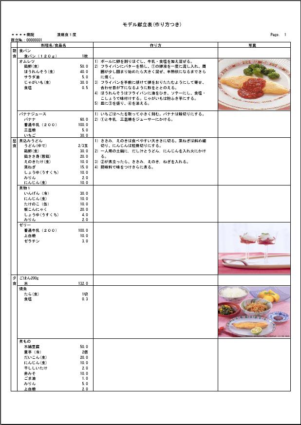 (画像1)食種別モデル献立表(作り方つき) 帳票サンプル