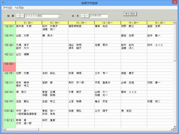 (画像1) 指導予約登録画面